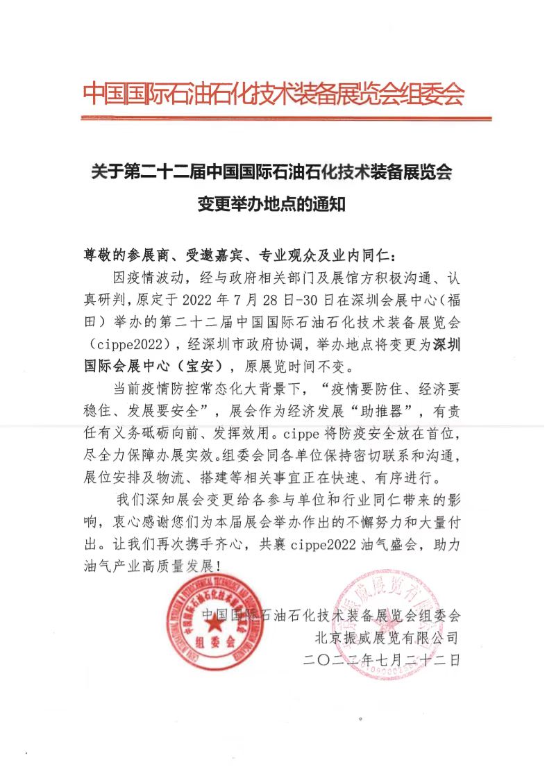 2022-07-262022年7月28日-30日,一年一度的世界石油天然氣大會——第二十二屆中國國際石油石化技術(shù)裝備展覽會(cippe2022振威國際石油展 )將在深圳國際會展中心(寶安)舉辦。奧美華石油科技將亮相展會,展位號:E1633。歡迎您屆時(shí)蒞臨企業(yè)展臺 參觀交流。奧美華石油科技(OMEWA Petrole.........【詳情】