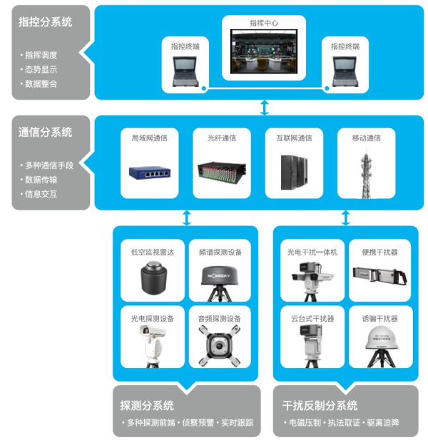 華諾星空反無人機系統(tǒng)針對無線通信、衛(wèi)星導航類無人機目標,集成主被動探測、電磁壓制、導航誘騙等技術(shù)手段,形成察打一體化防御能力,該系統(tǒng)可應用于油氣田、煉油儲油區(qū)、管道、加油站等區(qū)域長期防護。