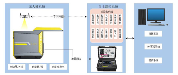 無人機自動機場是一套自動起降、自動巡飛、自動更換電池的全自動巡防系統(tǒng),無人機空中巡查可以全面覆蓋視頻監(jiān)控盲區(qū),配合地面各傳感器,打造全方位立體防御系統(tǒng),面對突發(fā)情況,無人機能夠第一時間飛至事發(fā)地點,進行空中偵查,快速把現(xiàn)場情況傳至指揮中心,為現(xiàn)場事態(tài)分析,制定解決方案提供幫助。該系統(tǒng)適用于高頻次的區(qū)域巡邏偵查,應用于煉油與化工廠區(qū)、輸油管道巡邏偵查任務。