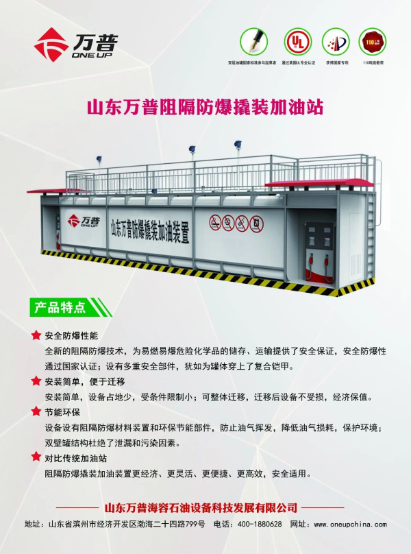 撬裝式加油裝置是集儲(chǔ)油罐、加油機(jī)、視頻監(jiān)控為一體的地面可移動(dòng)加油站;采用阻隔防爆技術(shù)改造,將阻隔防爆材料按一定的密度方式填充在儲(chǔ)存有易燃、易爆液體的儲(chǔ)油罐中,當(dāng)遇到明火、靜電、撞擊、雷擊、槍擊、焊接、意外猛烈撞擊事故時(shí)都不會(huì)發(fā)生爆炸事故。具有防火防爆,安全環(huán)保,占地面積小,便于遷移等特點(diǎn),產(chǎn)品廣泛適用于公交站點(diǎn)、港口、碼頭、機(jī)場、大型施工場地、企業(yè)內(nèi)部加油站等。