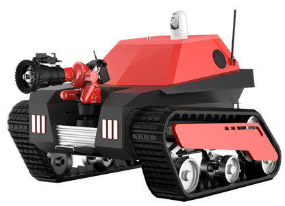 中型油動力消防滅火機器人采用履帶式懸掛減震機構,由機器人本體、消防水炮、紅外云臺及控制終端等模塊構成。同小型消防滅火機 器人相比,中型油動力消防滅火機器人的行駛性能、拖拽水帶、滅火能力等更加強大,負載更大,續(xù)航時間更長。中型油動力消防滅火 機器人適用于石油化工、地下管廊、隧道、大跨度/大空間場所等人員不易接近的危 險火災現(xiàn)場進行滅火、冷卻、化學洗消等作業(yè)。