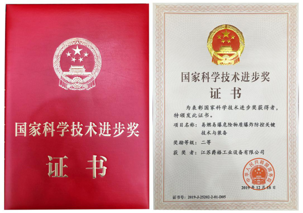 爵格工業(yè)與北京理工大學(xué)等單位聯(lián)合研究項(xiàng)目“易燃易爆危險(xiǎn)物質(zhì)爆炸防控關(guān)鍵技術(shù)與裝備”喜獲2019年國家科技進(jìn)步獎(jiǎng)二等獎(jiǎng)。經(jīng)國家應(yīng)急管理部推薦獲得爆炸安全領(lǐng)域的國家級(jí)獎(jiǎng)項(xiàng)充分表明爵格工業(yè)在該領(lǐng)域的產(chǎn)品研發(fā)和應(yīng)用處于國內(nèi)領(lǐng)先地位,為我國爆炸安全領(lǐng)域的科技創(chuàng)新和發(fā)展作出重要貢獻(xiàn)。