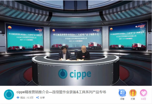 4月9日上午09:30-11:30,cippe精準(zhǔn)營銷推介會(huì)——江漢所連續(xù)管作業(yè)裝備工具系列產(chǎn)品專場準(zhǔn)時(shí)開播。本次線上推介會(huì)不僅得到參會(huì)企業(yè)和權(quán)威專家的認(rèn)同,也引起了廣大網(wǎng)友的共鳴。中石油江漢所精準(zhǔn)營銷推介會(huì)通過cippe線上直播平臺(tái)吸引了6.3萬人次在線觀看。