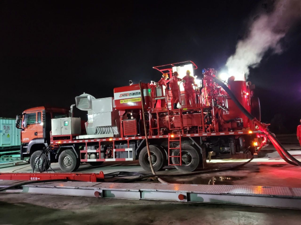 2020年6月28日,世界首臺(tái)陸地電動(dòng)固井車(chē)在四川威遠(yuǎn)頁(yè)巖氣田完成首口井固井施工作業(yè),設(shè)備運(yùn)行穩(wěn)定,固井質(zhì)量?jī)?yōu)良,工業(yè)試驗(yàn)取得圓滿(mǎn)成功。