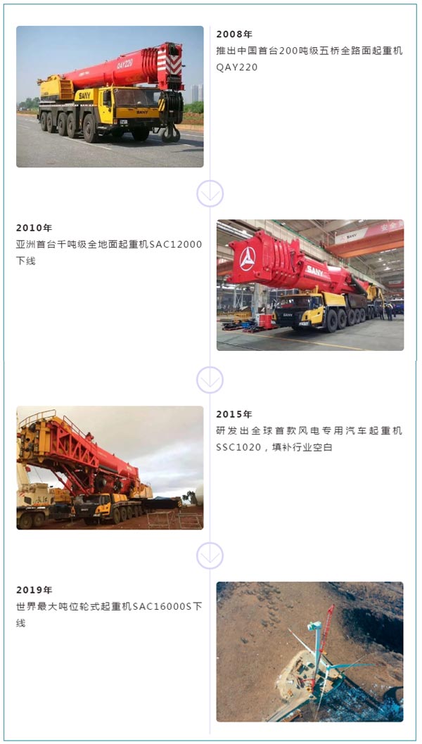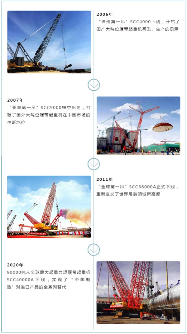 除了大噸位輪式起重機(jī),在履帶起重機(jī)的發(fā)展史上,三一也留下了濃墨重彩的一筆。
