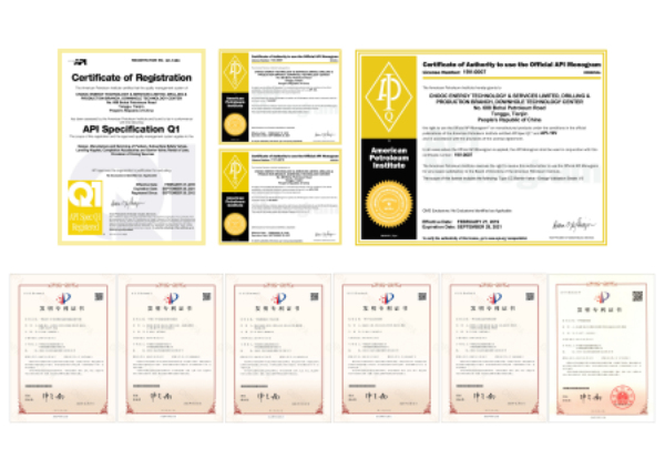 工程技術(shù)公司擁有自主知識產(chǎn)權(quán)成果440項,獲取ISO 9001 、API Q1等全面的質(zhì)量管理體系認(rèn)證、ISO 14001的環(huán)境管理體系認(rèn)證以及API 11D1、API 14A、API 19V 等7個產(chǎn)品認(rèn)證證書。
