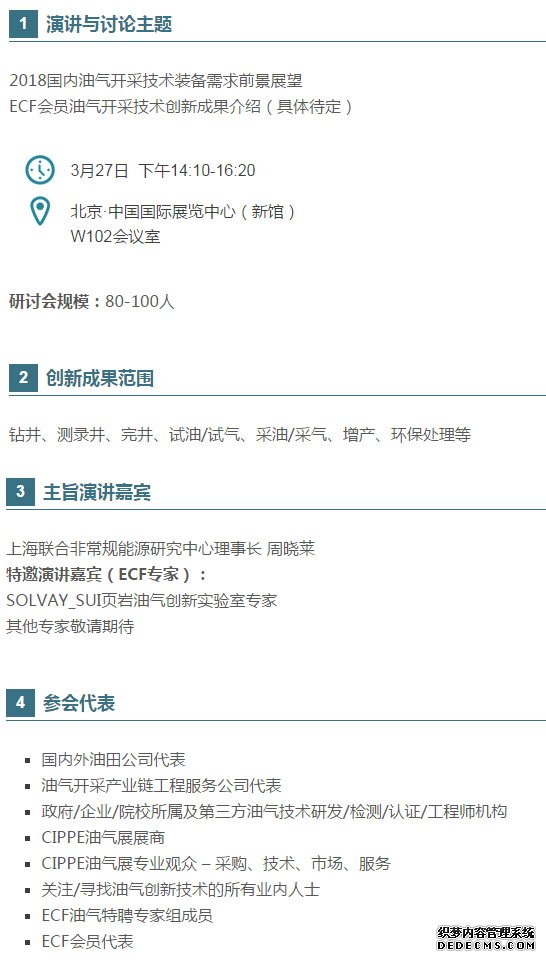 2018年3月27-29日,第十八屆中國國際石油石化技術裝備展覽會(cippe2018)將在北京·中國國際展覽中心(新館)舉行。展會同期,上海聯(lián)合非常規(guī)能源研究中心將于現(xiàn)場舉辦ECF“油氣開采與增產(chǎn)創(chuàng)新”交流研討會。上海聯(lián)合非常規(guī)能源研究中心理事長周曉萊女士將介紹國內(nèi)最為前沿的油氣開采與增產(chǎn)服務技術創(chuàng)新趨勢,展望市場需求與技術發(fā)展前景,同時特邀ECF專家分享最新的創(chuàng)新成果與產(chǎn)品?;顒蝇F(xiàn)場歡迎行業(yè)專家、參展企業(yè)、專業(yè)觀眾共同參與討論油氣開采技術裝備及增產(chǎn)服務的最新成果及產(chǎn)品。