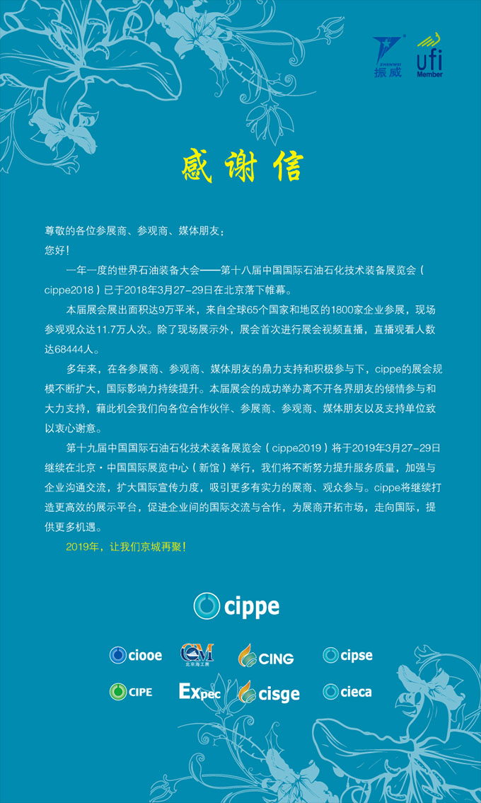 第十八屆中國國際石油石化技術裝備展覽會感謝信