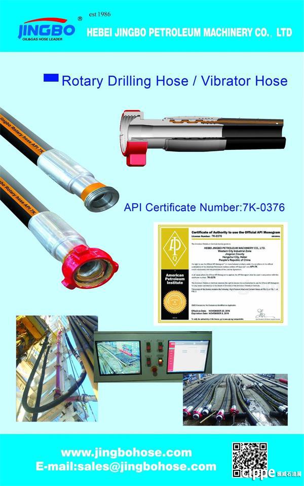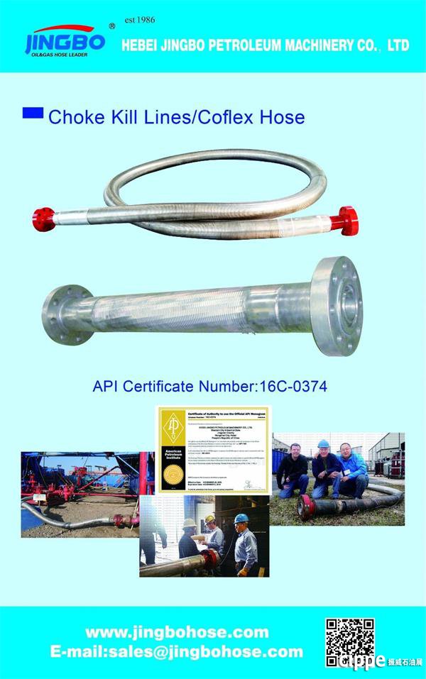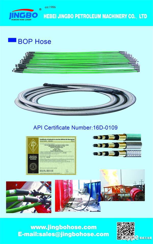 據(jù)了解,景渤石油從2009年起開始參展cippe,已經(jīng)連續(xù)參展10年,2019年將是其第11次亮相cippe,展位號E2058。此次展會主要展示的產(chǎn)品系列有,API 7K 高壓鉆井水龍帶、API 16C 柔性鎧裝節(jié)流壓井管線、API 16D 高壓耐火隔熱BOP井控專用軟管、高壓由壬,法蘭, 彎頭等。