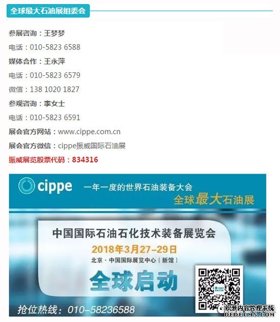 2018年3月27日至29日,一年一度的世界石油裝備大會(huì)——第十八屆中國國際石油石化技術(shù)裝備展覽會(huì)(cippe2018)將在北京•中國國際展覽中心(新館)盛大開幕,目前展會(huì)招展工作面向全球啟動(dòng)。