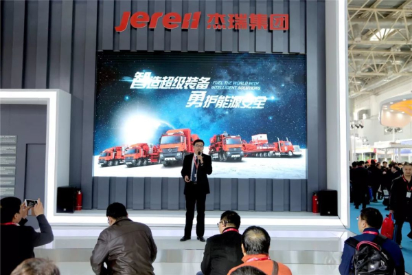 展會(huì)現(xiàn)場,杰瑞工程師做了“智造超級裝備 勇護(hù)能源安全”為主題的演講,展示了杰瑞渦輪壓裂車、智能電控大管徑連續(xù)油管設(shè)備、世界最大排量混配供液車、智能免破袋連續(xù)輸砂裝置等一系列杰瑞自主研發(fā)的、擁有智能控制系統(tǒng)的超級裝備,高品質(zhì)的油田專用設(shè)備和熱情專業(yè)的技術(shù)講解,給參觀者留下了深刻的印象。
